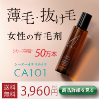CA101(シーエーイチマルイチ)は「ハリ・コシ」「ツヤ」「白髪」「抜け毛」「薄毛」といったエイジングによる髪の悩みを抱えた女性のために開発された育毛効果と美髪効果を併せ持つ新発想の医薬部外品の育毛剤です。